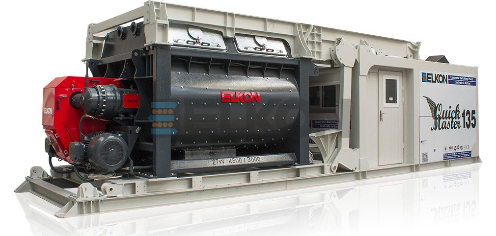 Для реализации новых задач был выбран бетонный завод ELKOMIX-35 Quick Master с производительностью до 30 м³ бетона в час. Компактная модель оснащена крестообразными бункерами на 4 вида инертных материалов, тарельчатым смесителем 0,5 м³ и скиповой подачей материалов, что делает завод оптимальным решением для текущих нужд. Оцинковка дозаторов, подвергающихся воздействию влаги, обеспечивает долговечность оборудования, а конструкция-трансформер завода позволяет быстро перемещать его для выполнения задач на других площадках без необходимости специального фундамента.